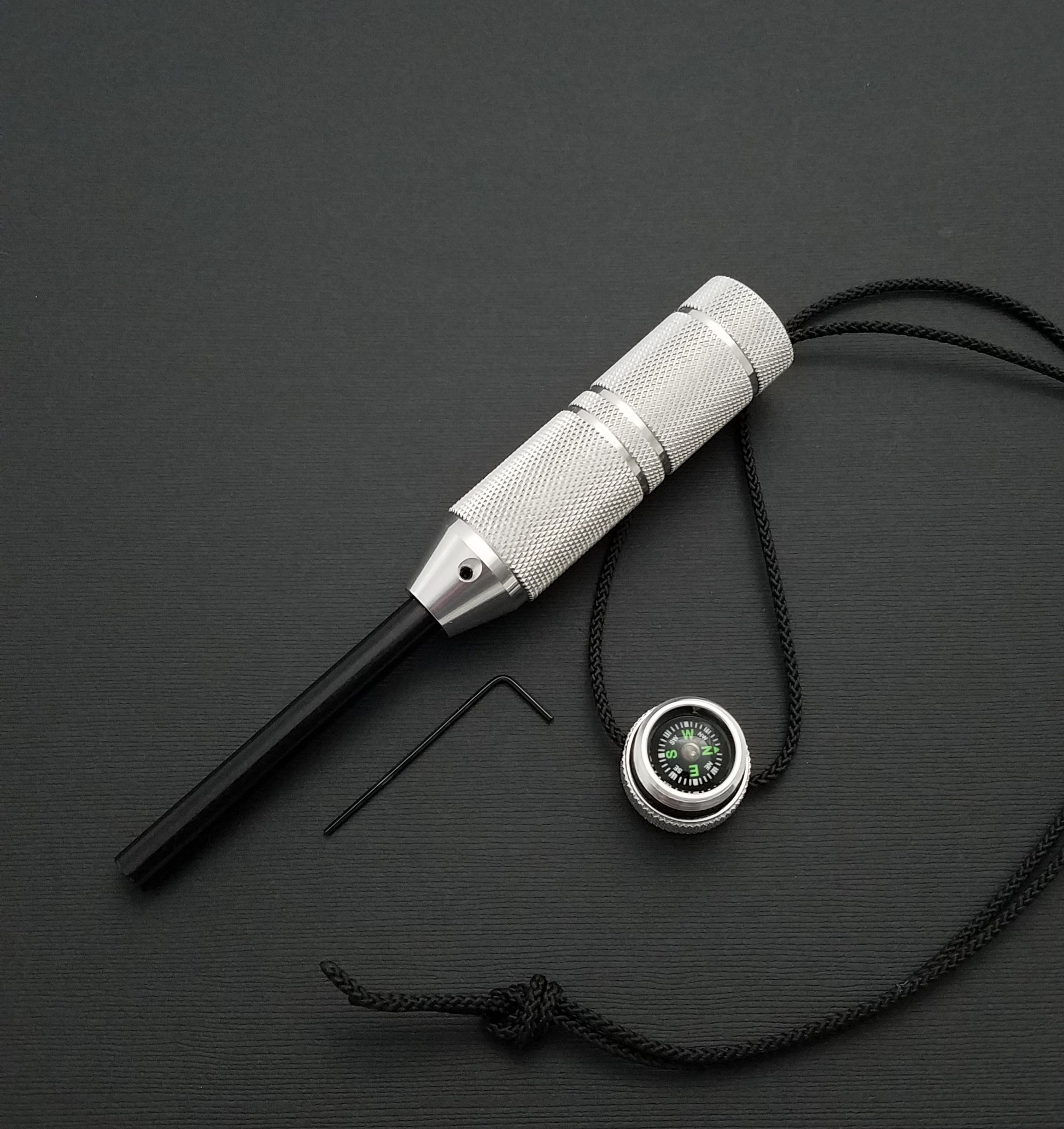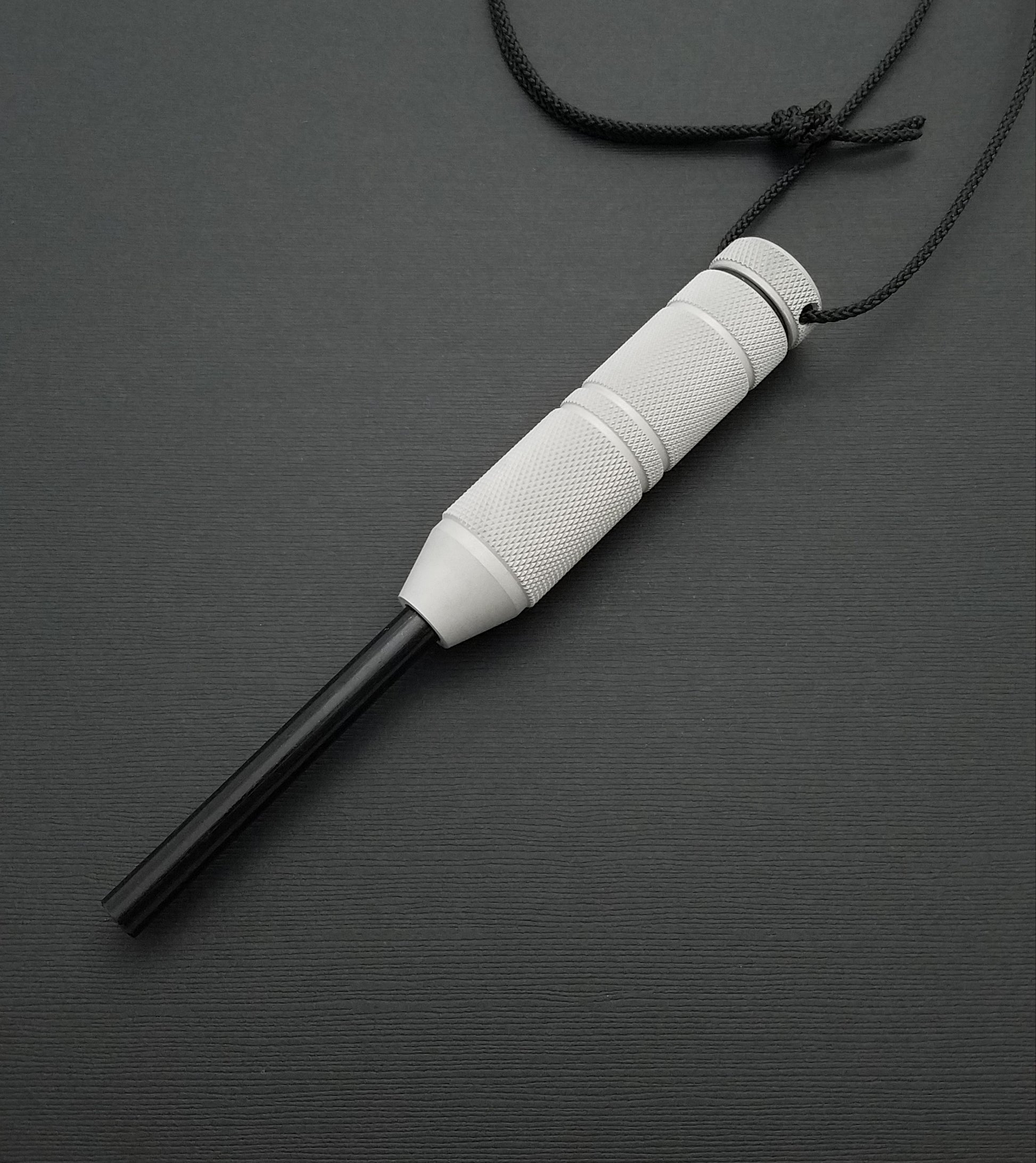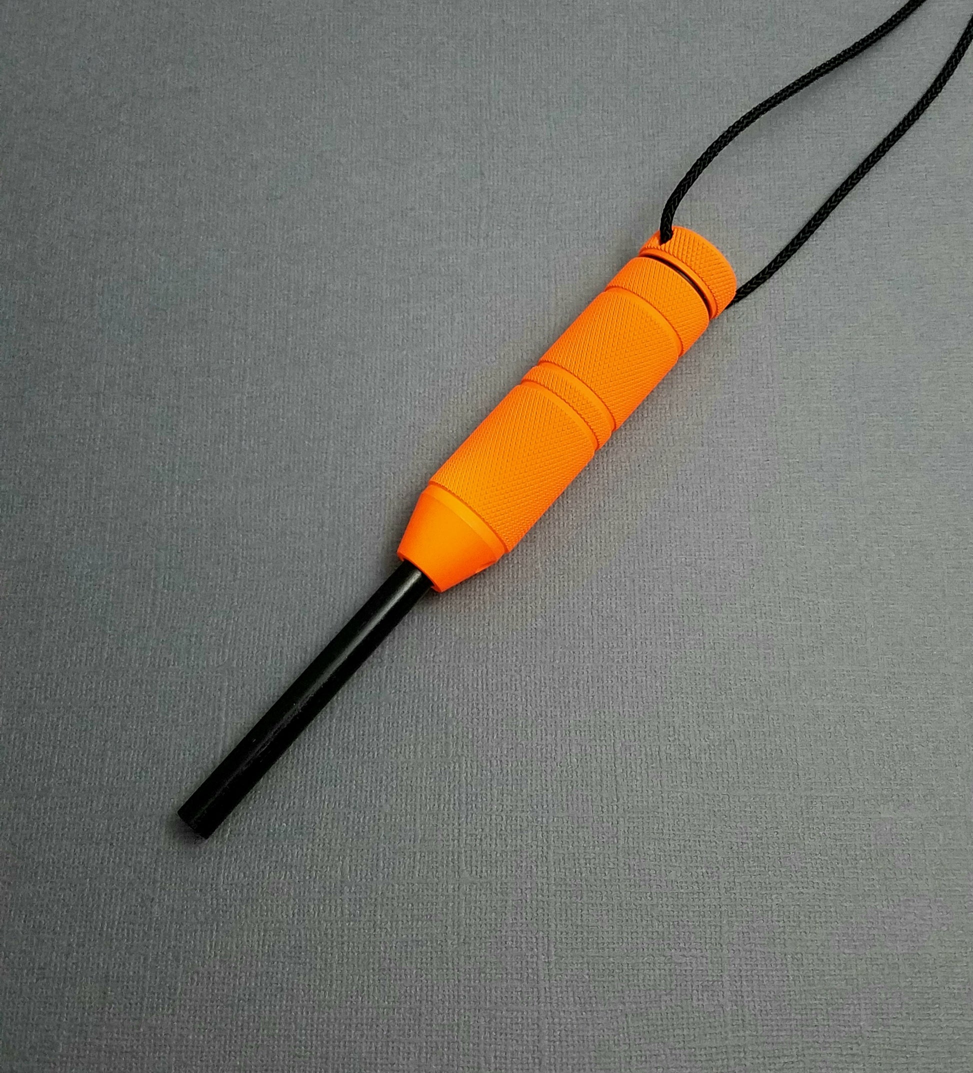 Unlike matches or lighters, it is virtually unaffected by water, and is capable of hundreds if not thousands of strikes. The ferro rod is replaceable, and is held in place by a set screw, for which the wrench is included. Satin aluminum is the standard finish, blasted finish is available on request for no charge, and hard anodized finishes are optional for an additional charge.