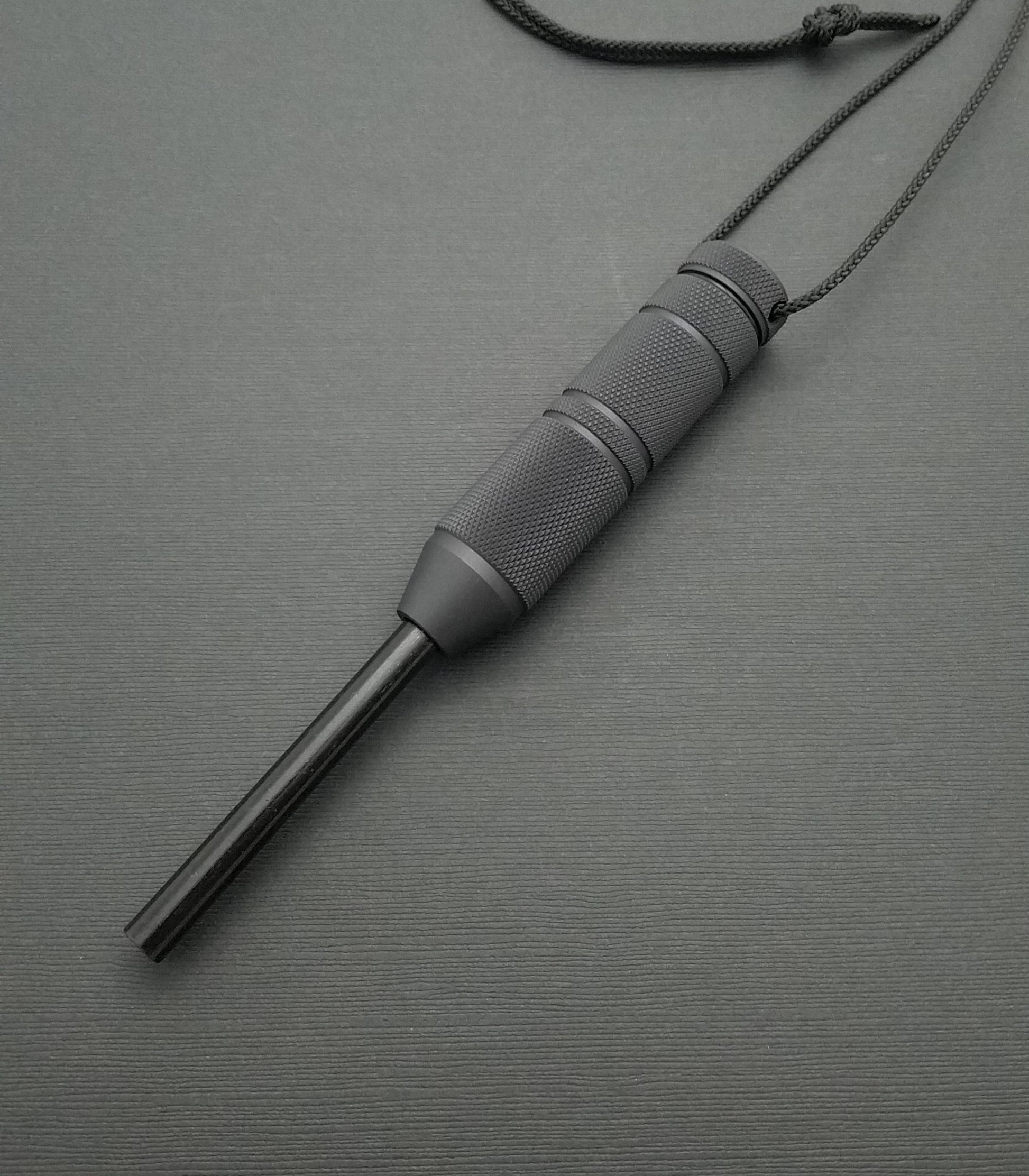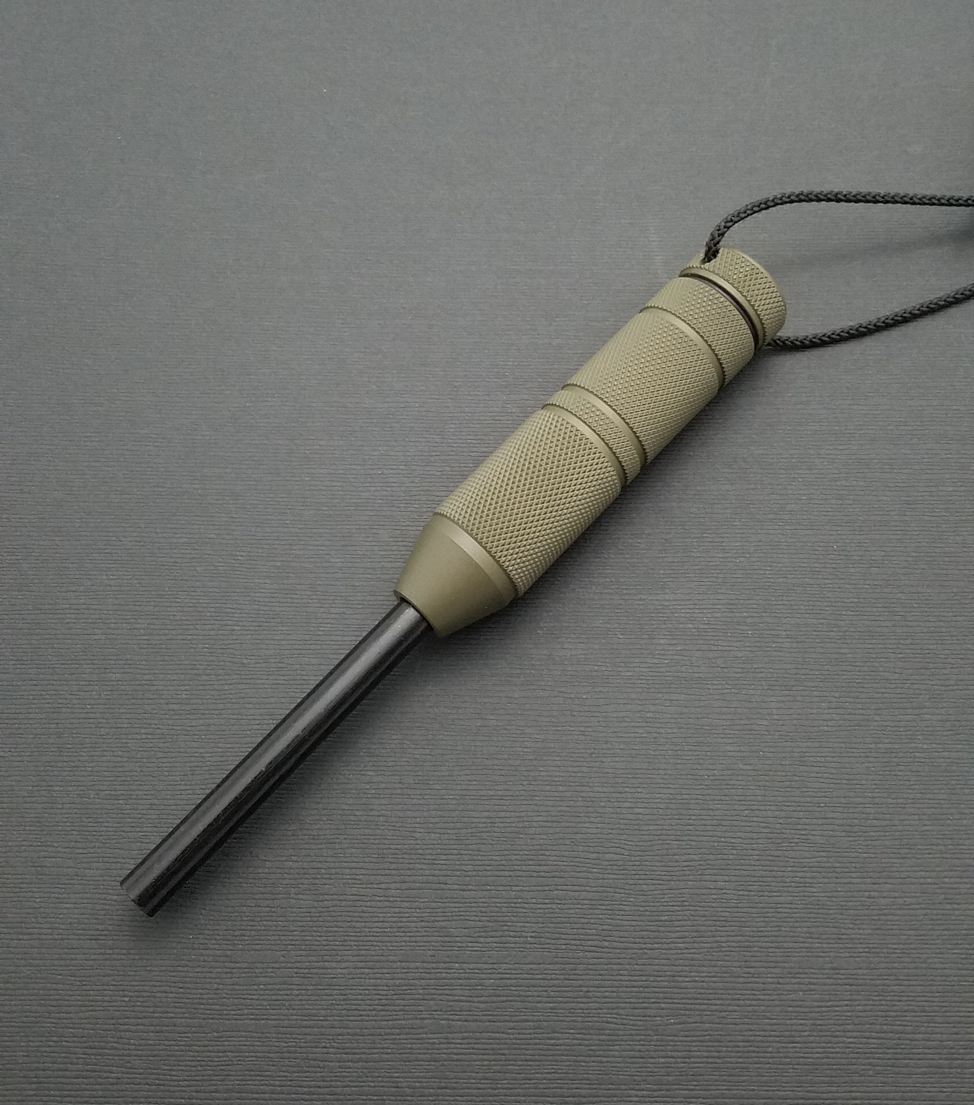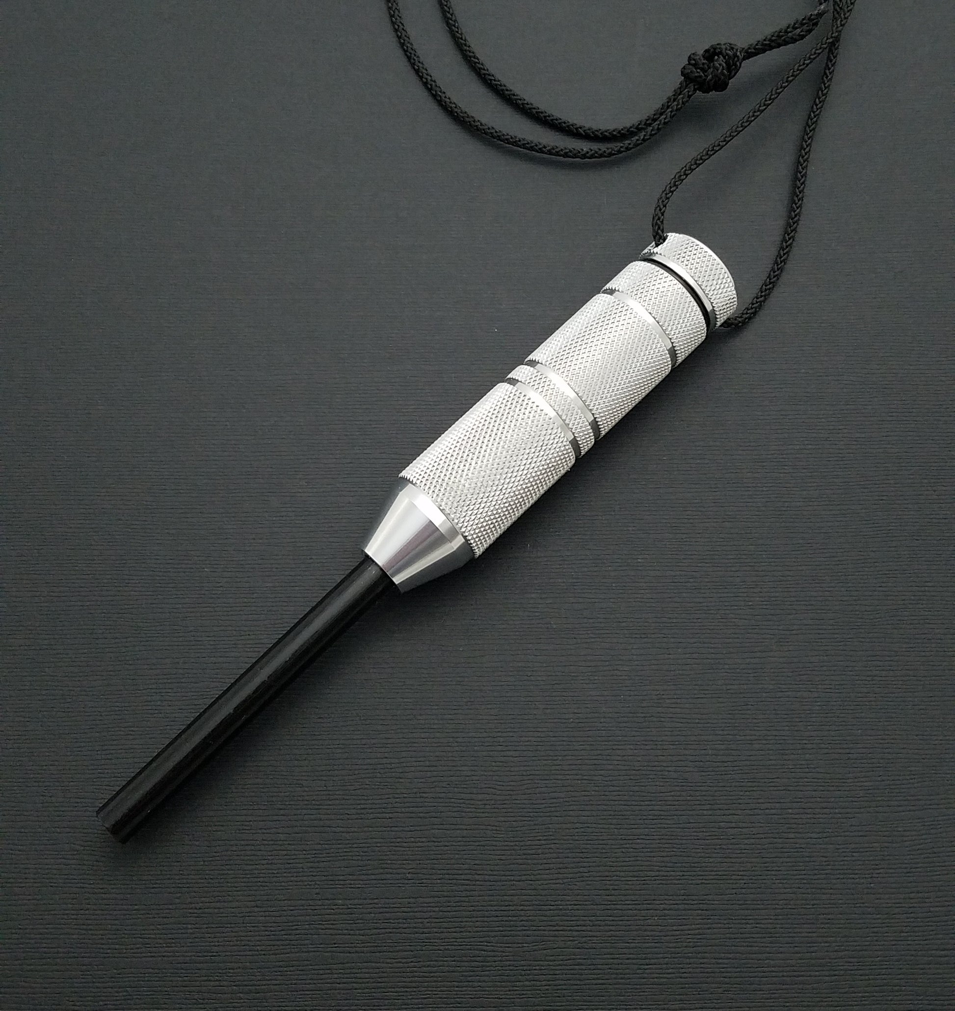 Unlike matches or lighters, it is virtually unaffected by water, and is capable of hundreds if not thousands of strikes. The ferro rod is replaceable, and is held in place by a set screw, for which the wrench is included. Satin aluminum is the standard finish, blasted finish is available on request for no charge, and hard anodized finishes are optional for an additional charge.