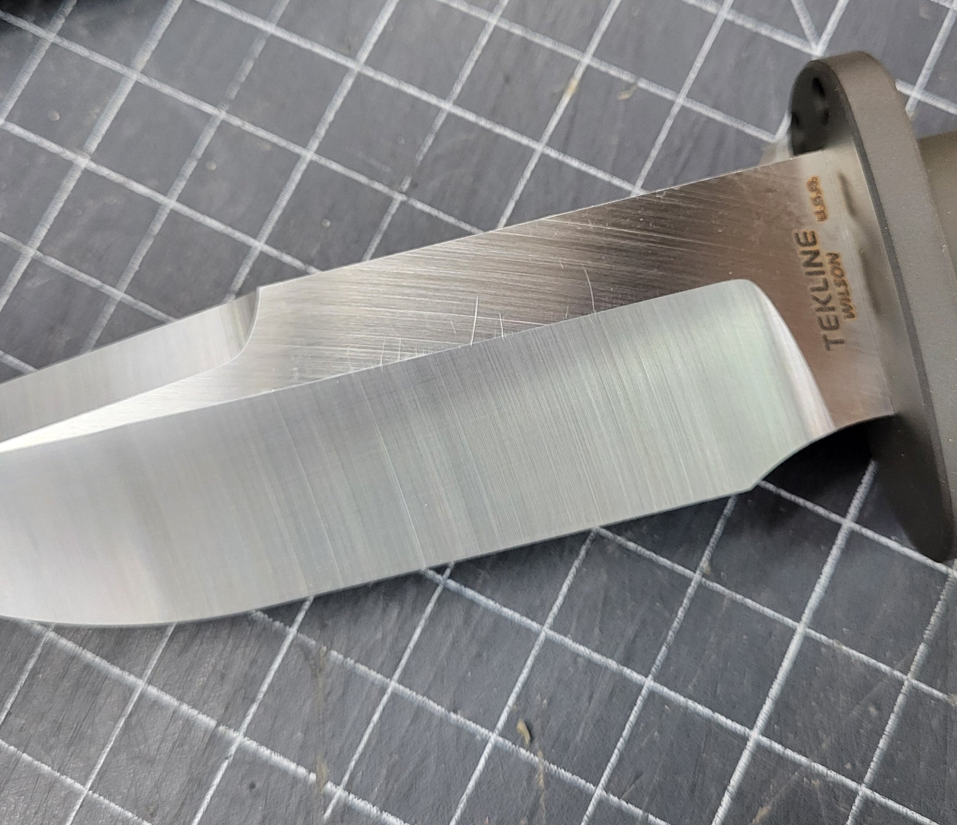 The closeup photos of the blade show the finish on these, the other pictures are for reference only. The markings no longer show "Prototype," but "Basic Duty" instead.