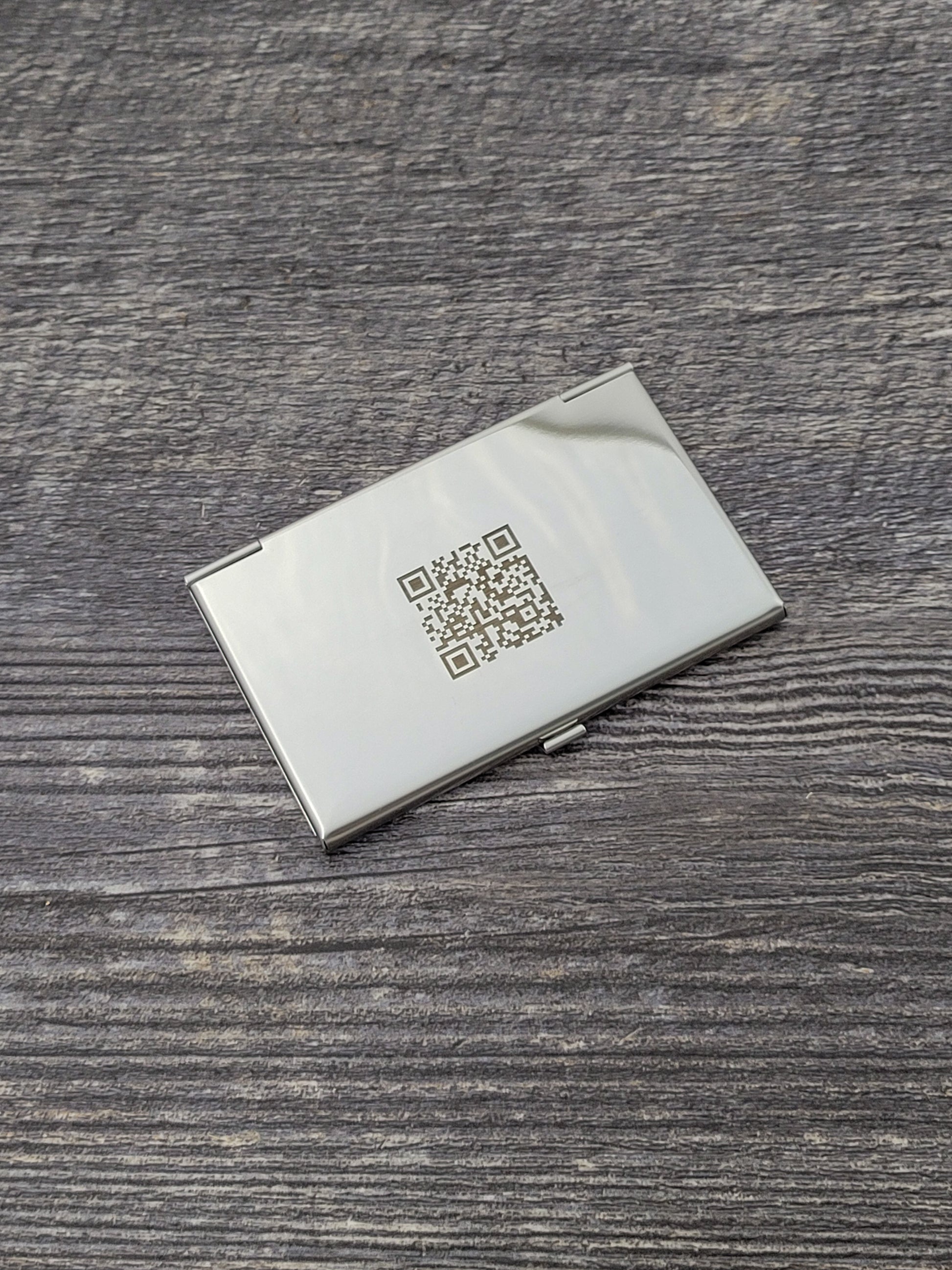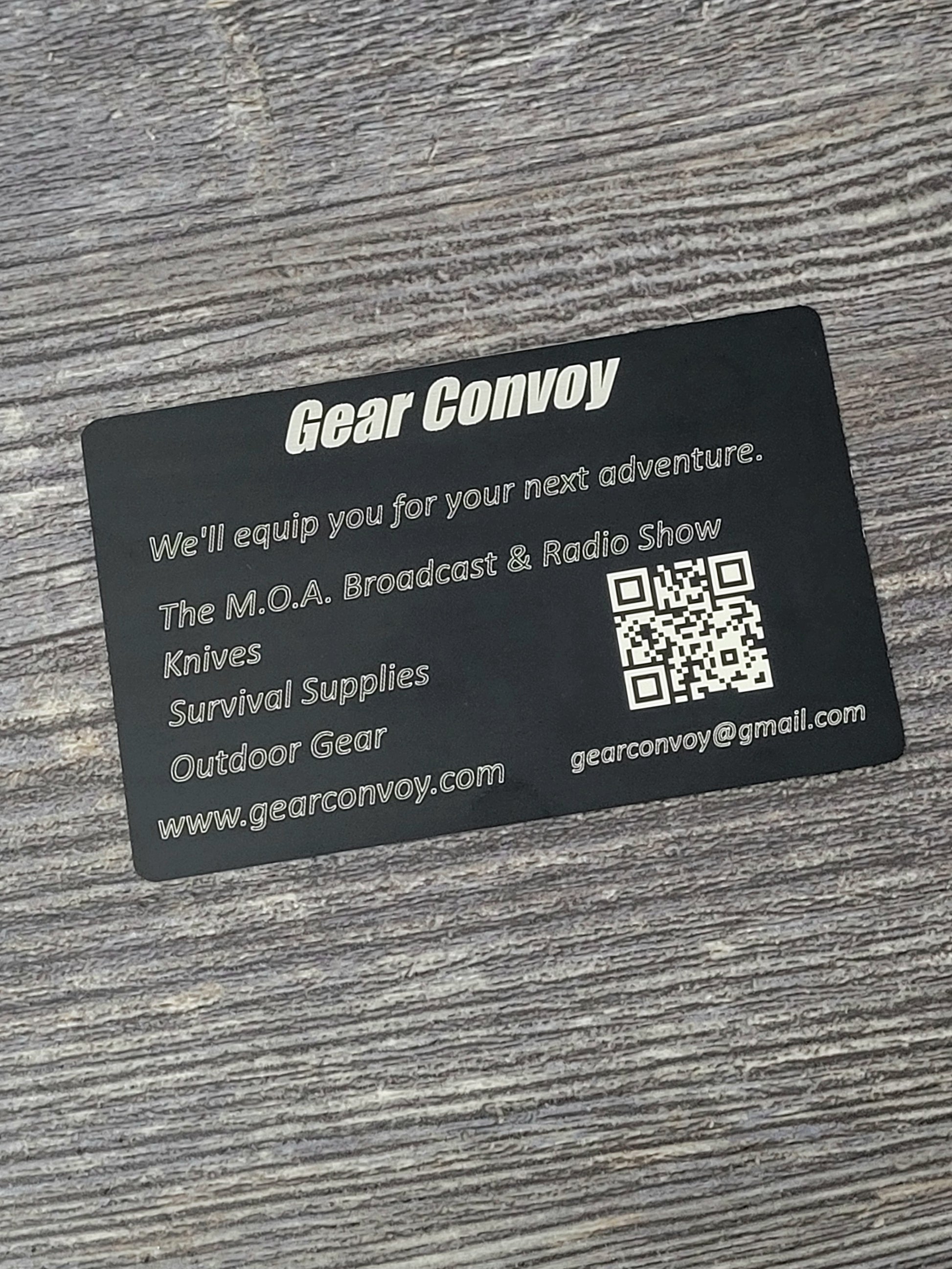 We also offer a Value Pack- A metal card holder laser engraved with your business name on front and QR code on back (or whichever combination you prefer) and 50 engraved business cards, all for $75! This allows you to have people scan you QR code without giving out a card, and the QR code can be set up as a link to your website or as a "contact" file. Contact us for custom combinations or artwork, info@gearconvoy.com.