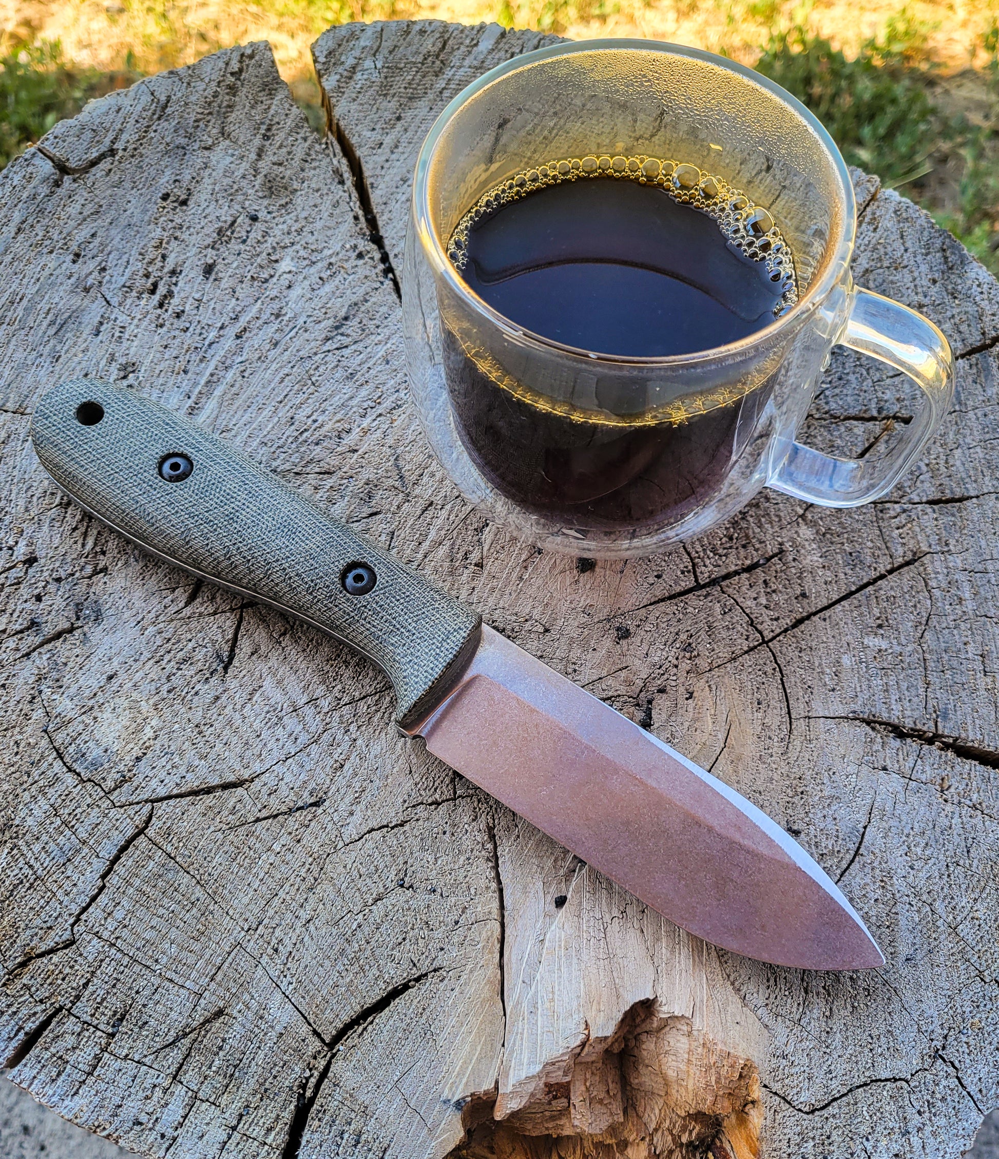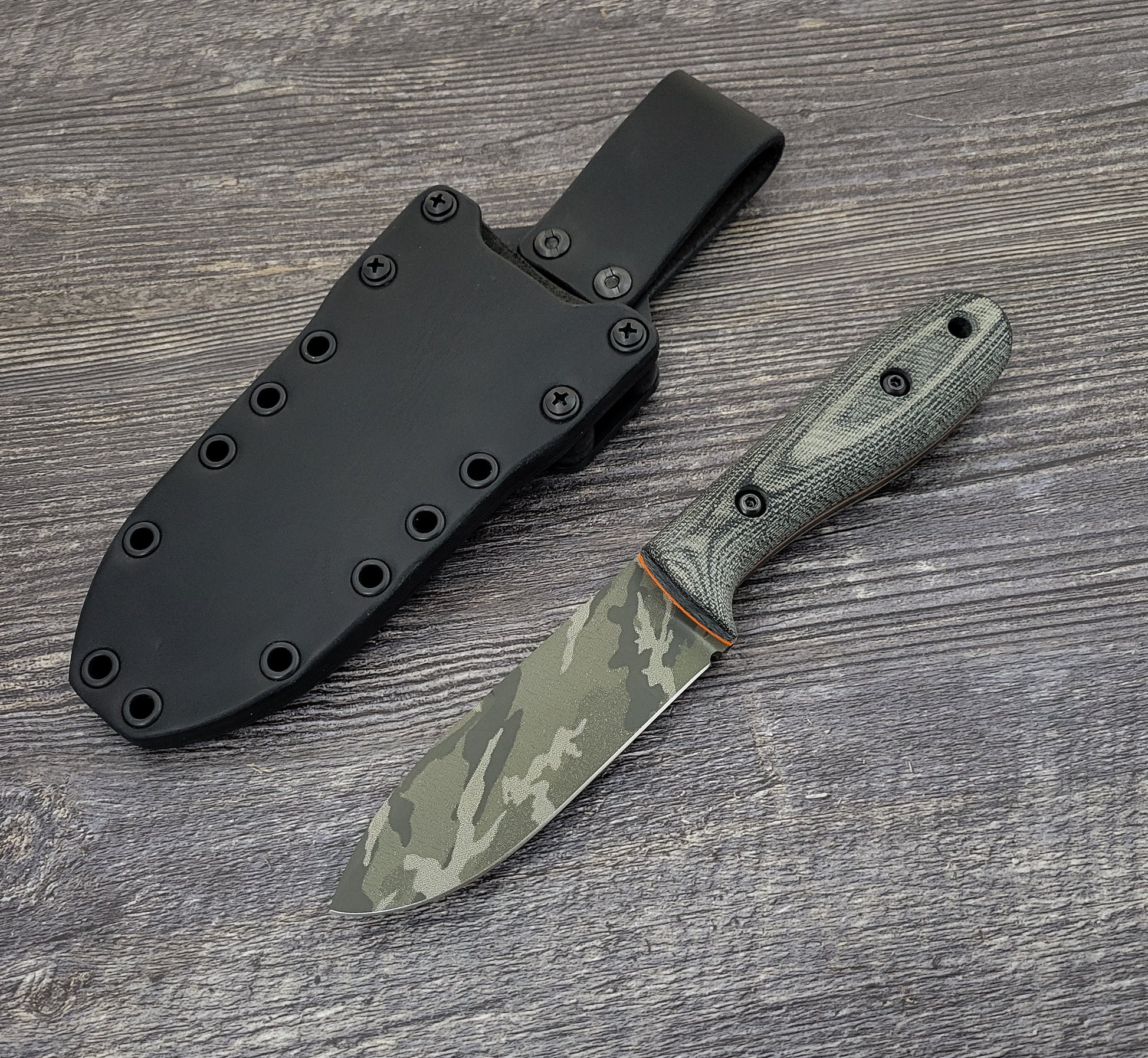 The Kephart is pictured with a swedge grind in these pics, for pictures without, please CLICK HERE for the standard Kephart. Pictures of GunKote finishes will be added soon. We currently only have a few photos of the new Guerrilla Cam Finish (the camouflage blade finish), so the micarta/swedge options and photos are not completely accurate when you select them on this page.