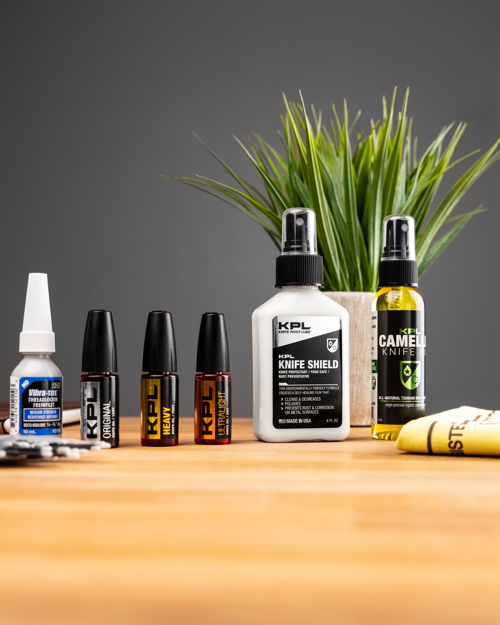 Lube - Knife Pivot Lube Triple Combination Pack includes each KPL lubricant product - (5WT, 15WT, 75WT). Each is a fully-synthetic oil made for use in knives anywhere ultimate long-lasting smoothness is a must. Knife Pivot Lube Knife Oils keep dirt, metal particles, and grit in suspension™ so they don't cause grinding and premature wear.