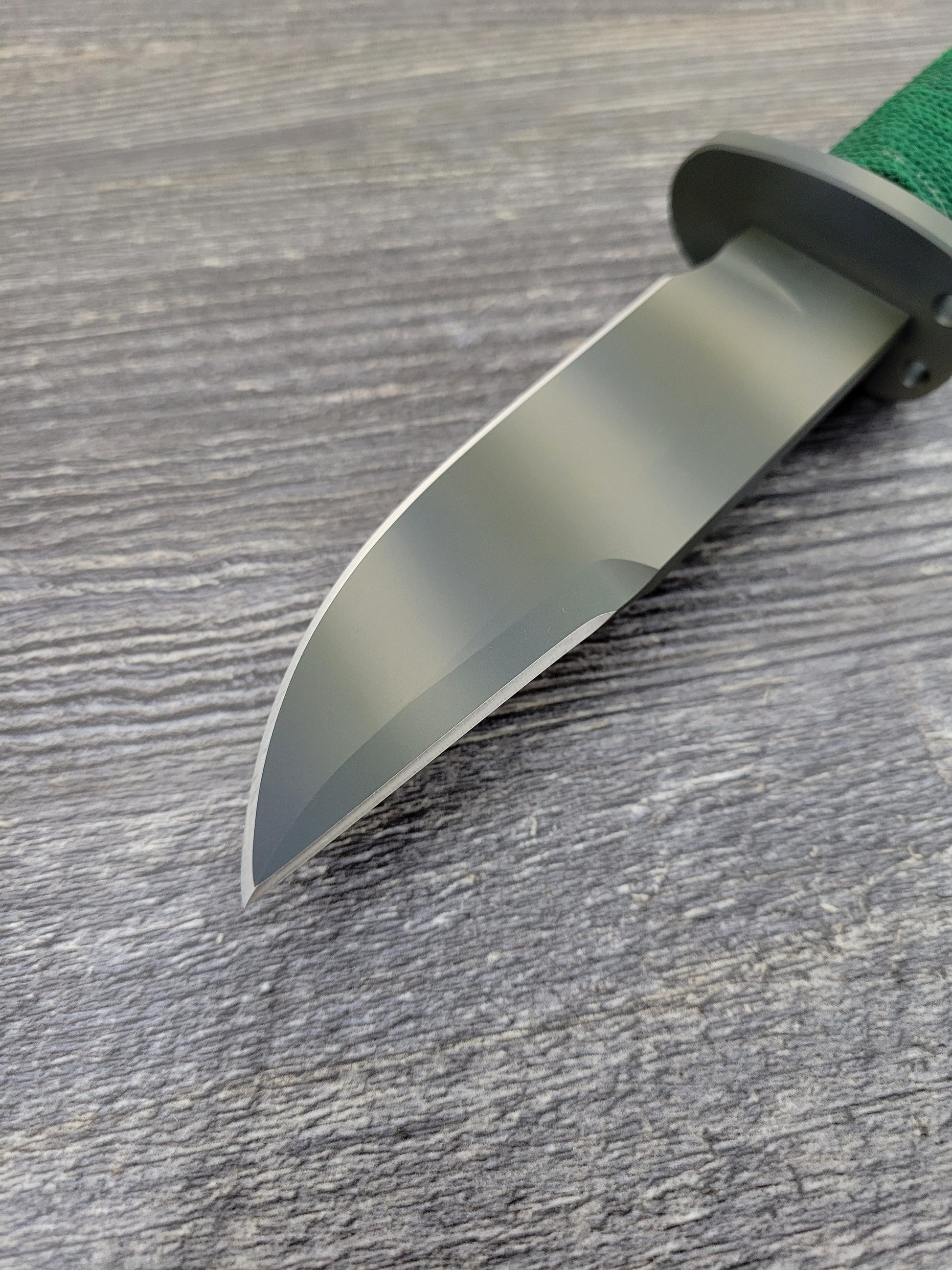 Sharpening the clip gives a more aggressive appearance and improves penetration for the tip of the knife. The clip edge is ground at an obtuse angle for strength, while the thickness behind the edge is greater, for strength (this is a survival knife, not a combat knife).